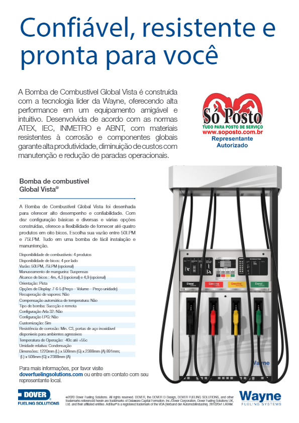 As bombas de combustíveis são projetadas para atender o processo de venda entre o Proprietário do Posto de Serviço e o Cliente