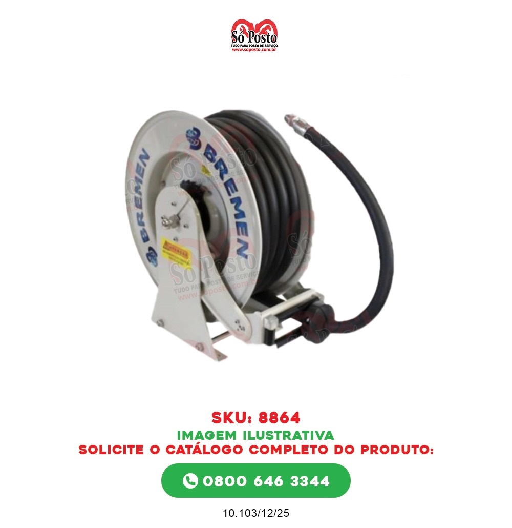 Mangueira: Acompanha uma mangueira de 1 polegada de diâmetro e 15 metros de comprimento, específica para o uso com óleo diesel. Essa mangueira é conectada ao sistema interno do carretel.