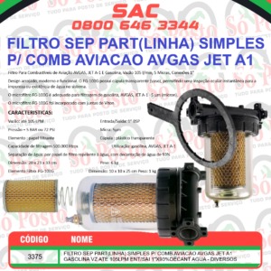 Filtro Para Combustíveis de Aviação AVGAS, JET A-1 E Gasolina