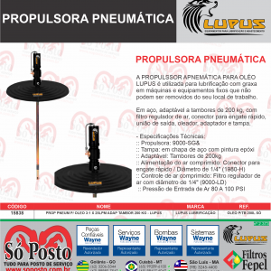 a Propulsora Pneumática para Óleo Lupus 3:1 x 25LPM com adaptação para tambor de 200 kg é uma ferramenta eficiente e prática para a movimentação de óleo, oferecendo uma boa relação entre pressão e vazão, além de ser facilmente instalada em tambores padrão.