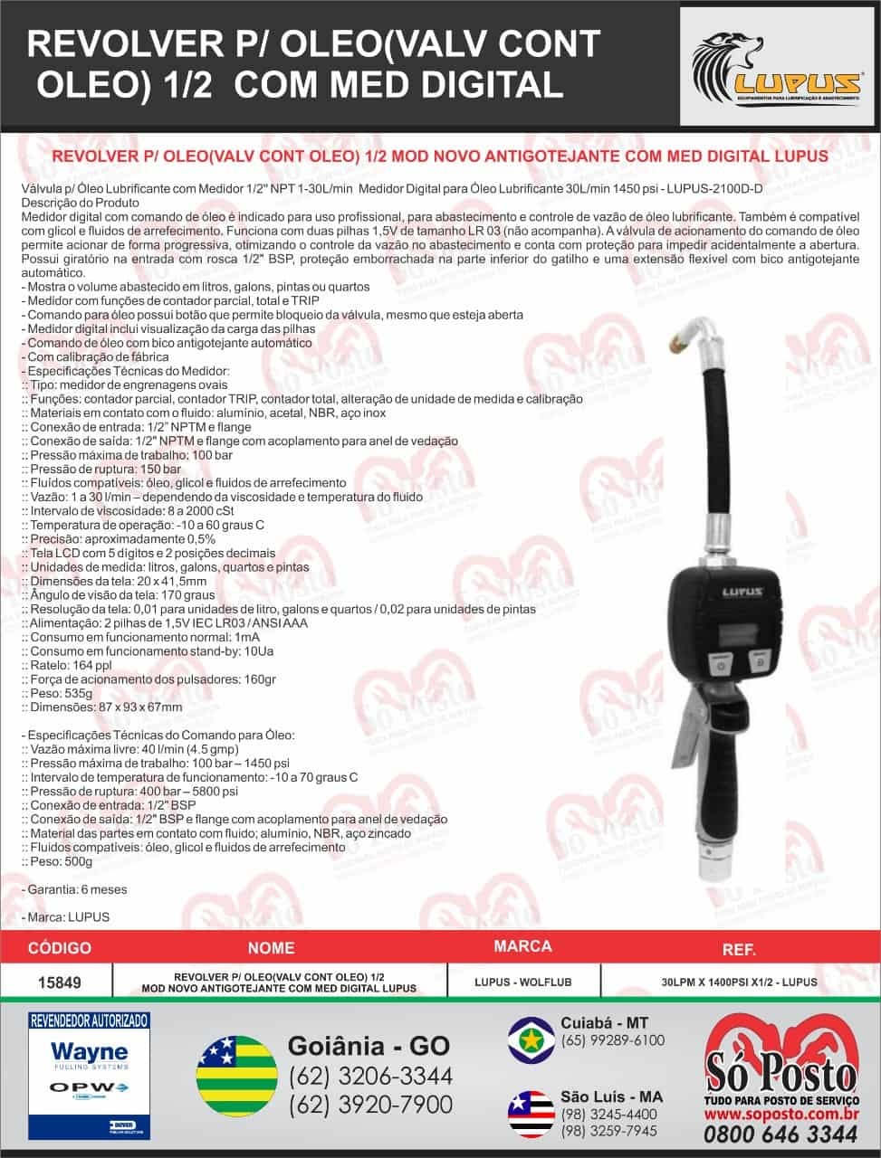 O “REVOLVER P/ OLEO (VALV CONT OLEO) 1/2″x25LPM MOD NOVO ANTIGOTEJANTE COM MED DIGITAL 2100S-DLUPUS” é um bico medidor digital da marca Lupus, projetado para controlar a dispensação de óleo lubrificante.