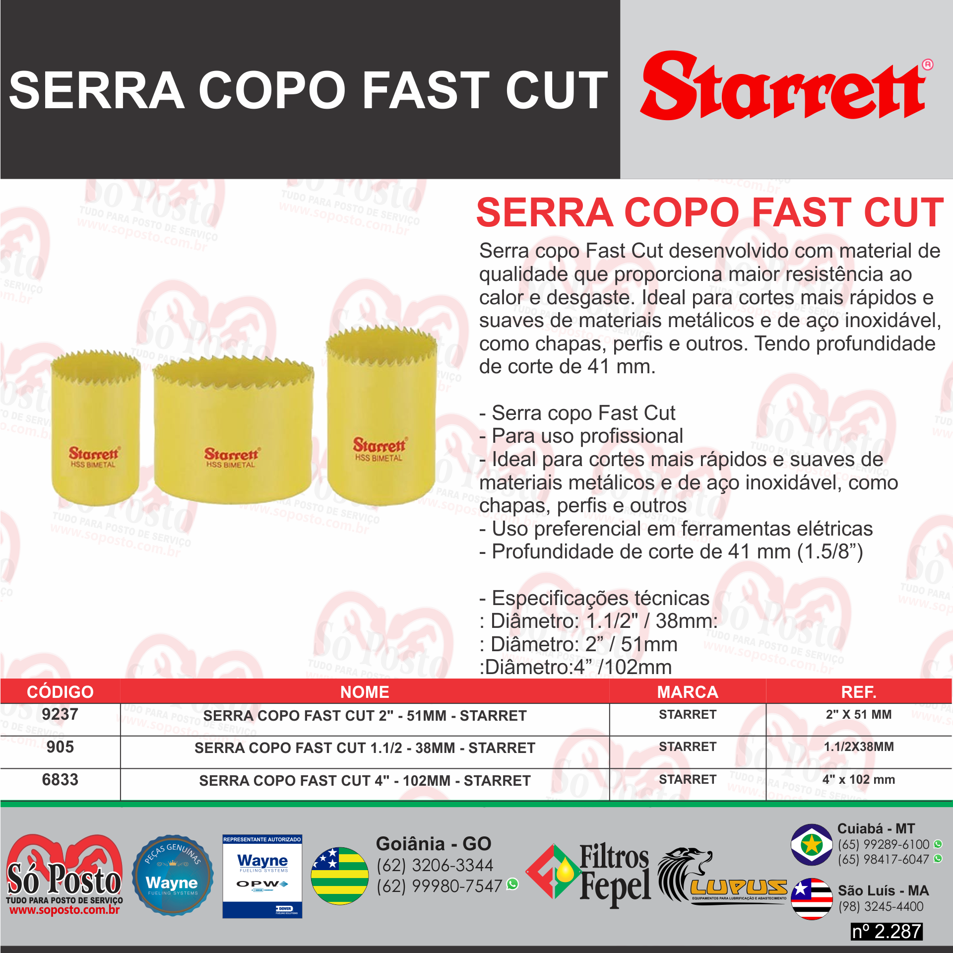a Serra Copo Fast Cut 2" - 51mm da Starrett é uma ferramenta eficiente e durável, projetada para oferecer cortes rápidos e precisos em uma ampla gama de materiais,