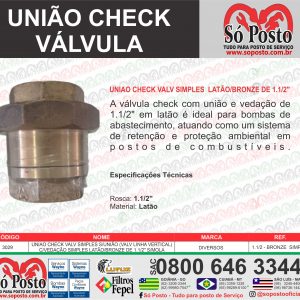 A UNIAO CHECK VALV SIMPLES S/UNIÃO (VALV LINHA VERTICAL) C/VEDAÇÃO SIMPLES LATÃO/BRONZE DE 1.1/2" S/MOLA, também conhecida como válvula de retenção vertical sem mola, é aplicada em sistemas de tubulação vertical de 1.1/2 polegadas onde se deseja permitir o fluxo em apenas uma direção (de baixo para cima) e evitar o refluxo.